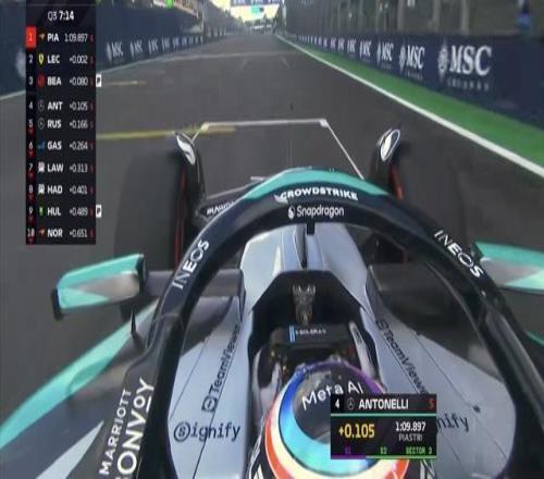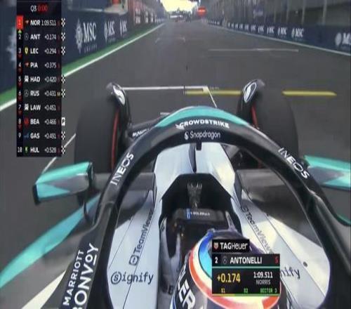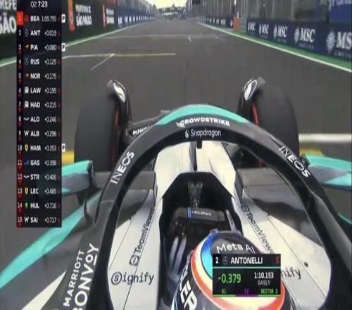 拉塞尔换上中性胎完成最后一圈上到第6,安东内利延续火热的状态,在本站的两场排位赛均拿到第2!