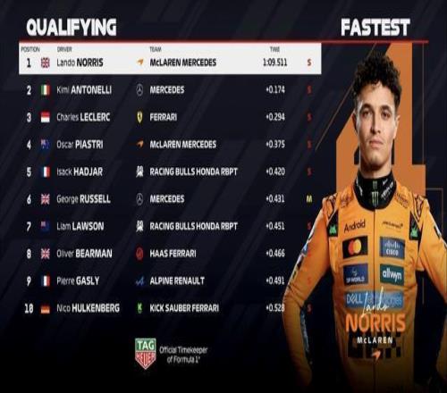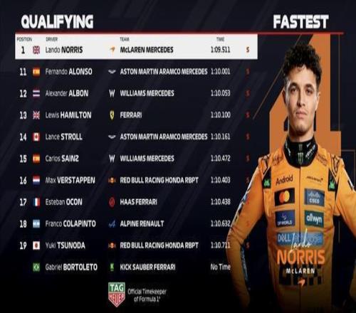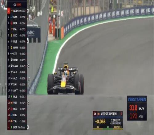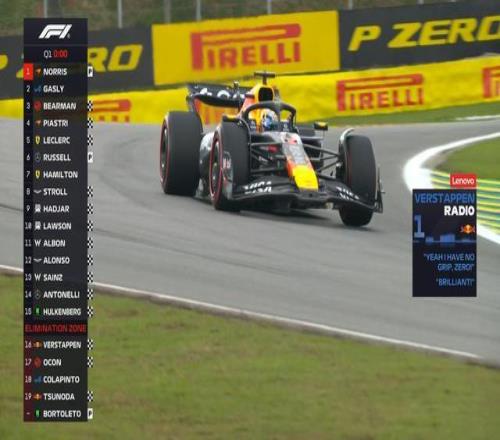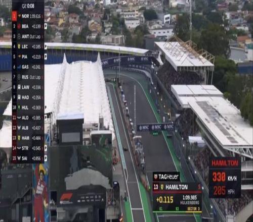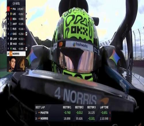F1巴西站排位赛:诺里斯杆位,汉密尔顿第13,维斯塔潘第16