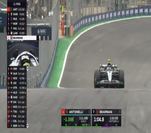 Q2首轮飞驰圈结束,贝尔曼排在榜首,安东内利、皮亚斯特里排在二三;