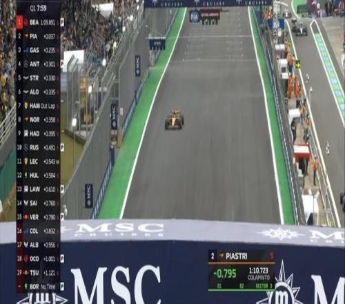 Q1首轮飞驰圈结束,安东内利暂居榜首,皮亚斯特里处于淘汰区;