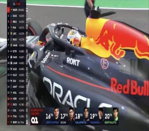 两台红牛先后冲线,角田排在第19,维斯塔潘只能排在第16,红牛双车Q1出局!!!